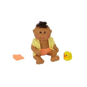 These Cabbage Patch Kids Newborns add fun to your tub time. Use warm water to make your baby from dirty to clean. The dirty spots will return in moments after the bath for repeated tub play time. This baby is right around 10 inches tall, all vinyl and perfect for bath time. It comes with it's own bath squirt toy(types may vary) and wash cloth. Recommended for ages 2 and up.